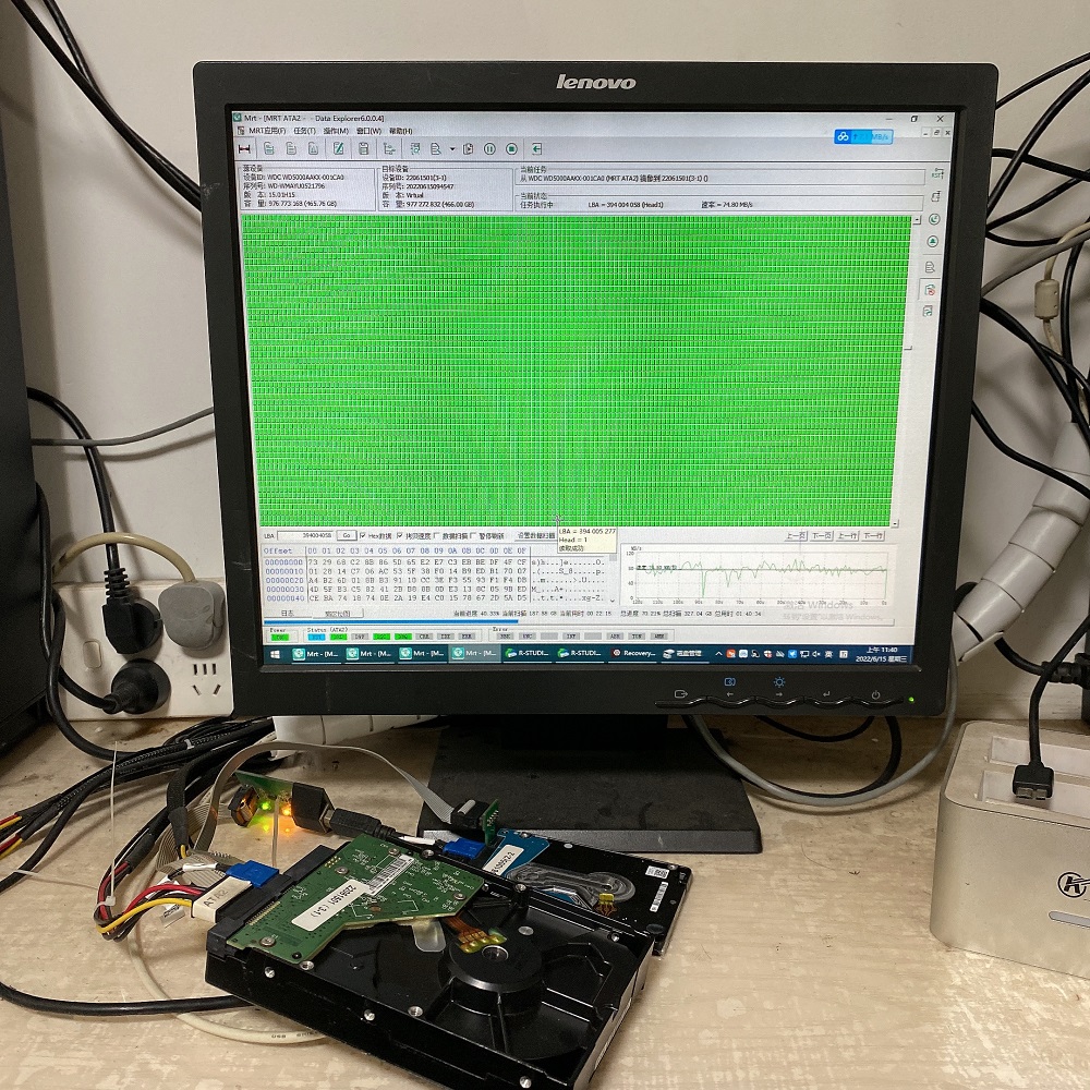 外地电脑服务商,发来一块西数WD5000AAKX-001CA0 500G台式机硬盘,经过检测1号磁头不好(这个硬盘有0.1两个头)1号头无法读取数据!先用MRT设备把0号面镜像出来!然后进入无尘工作室进行开盘操作!更换好的磁头,做完1号面!数据百分百恢复!